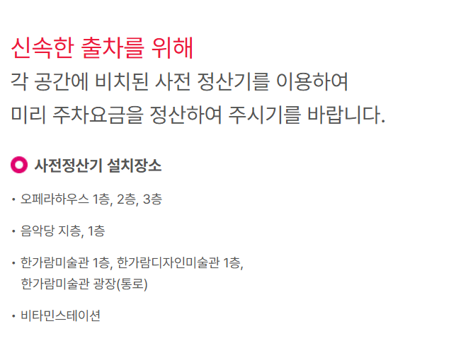 - 예술의 전당 주차장 이용, 정산 시 사전 정산기 이용